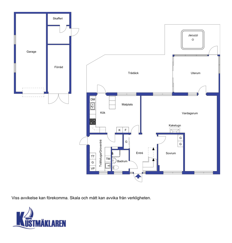 Friliggande garagebyggnad som uppfördes 1983 om ca: 54 kvm med isolerad garagedel, separat oisolerad förrådsdel och skafferi.
