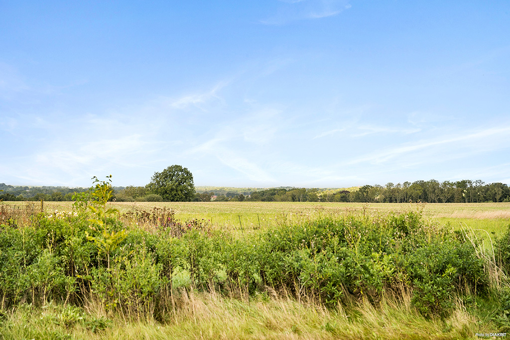 Generös hörntomt med åkrarna som närmsta granne. Stora grönytor och en insynsskyddad baksida.